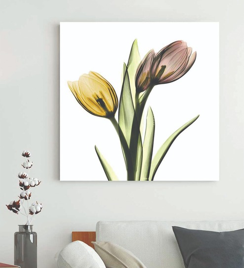 Pink Yellow tulips Faith Poster Print Flower Canvas art Print, Modern X-Ray Wall Painting For Living Room D cor