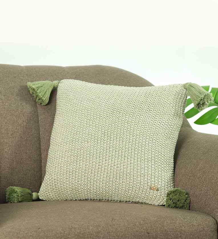 Pistachio Green 100% Cotton Moss 16X16 Inches Knitted Cushion Cover