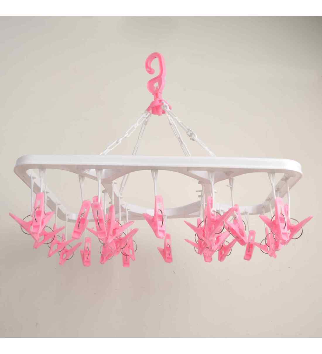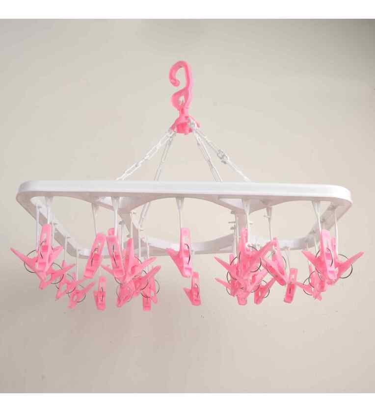 Perfect design: This hanger for socks can be rotated to any angle you want and it is easy to dry laundry from all directions. Hanger clips are perfectly spaced to efficiently maximize air flow. Our clip and drip hanger - your lifestyle change-maker Essential and useful: suitable to hang drying the socks, bras, cloth diapers, towel, underwear, scarf, panties, gloves, handkerchiefs, baby clothes or other small delicate items Materials: Cloths drying hanger made of plastic and long-lasting spring, it is extremely sturdy and durable. The 24 pieces of high stretch clips hold items tightly. Plastic clips with fine-grained, non-slip teeth but will not leave marks on your beautiful clothes