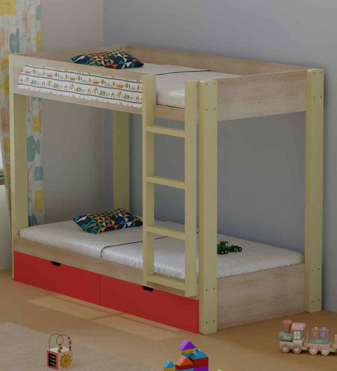 STYLISH & FUNCTIONAL KIDS BED: Modern Kids Bunk Bed for 2: Space-efficient bunk bed designed for two single mattresses(6x3ft Mattress size for each), perfect for siblings. Features a a safe, easy-to-climb ladder for convenient access to the upper bunk. SAFE FOR CHILDREN NO PAINT, NO CHEMICALS: Made with non-toxic materials and zero paint. Features scratch-resistant PVC lamination, rounded corners, and no sharp edges, making it a child-safe bed for toddlers to teens. DURABLE CONSTRUCTION: Pine Wood + HDF: Crafted using solid Pine Wood for strength and stability, combined with high-density HDF engineered wood for durability and a smooth, refined finish. Ensures long-lasting performance and a premium look. WEIGHT BEARING CAPACITY: 180Kgs on Lower Bed, and 110Kgs on Upper bed, making it a safe haven for kids to jump, sleep, play & grow. AMPLE STORAGE: 2 Heavy-Duty Pull-Out Drawers on wheels, each with a 60 kg load-bearing capacity. Perfect for toy storage, bedding, or clothes. Drawers can be fully removed for playtime and allow easy cleaning underneath. DIY ASSEMBLY WITH SUPPORT: Comes with step-by-step assembly manual and video guide. Need assistance? You can contact Boingg! Service Support on 011-41170803
