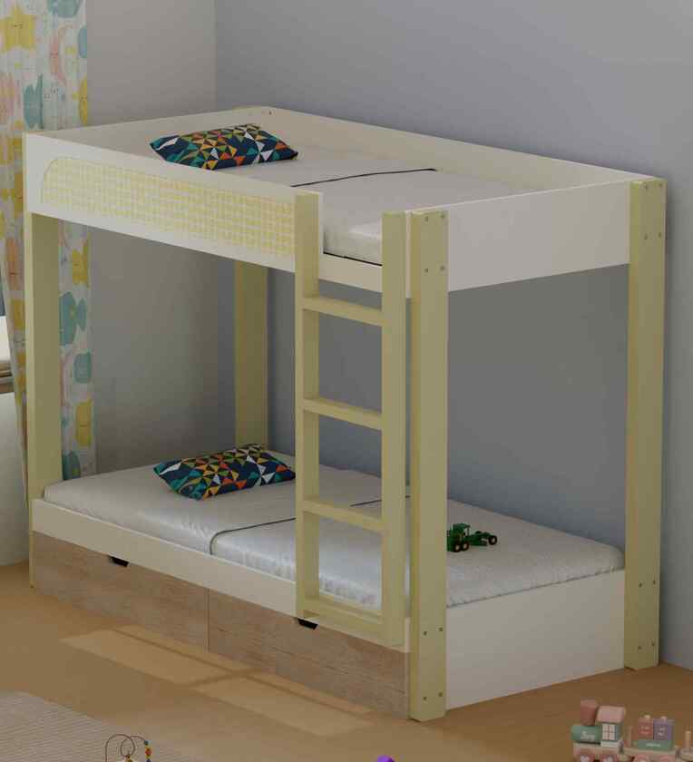 STYLISH & FUNCTIONAL KIDS BED: Modern Kids Bunk Bed for 2: Space-efficient bunk bed designed for two single mattresses(6x3ft Mattress size for each), perfect for siblings. Features a a safe, easy-to-climb ladder for convenient access to the upper bunk. SAFE FOR CHILDREN NO PAINT, NO CHEMICALS: Made with non-toxic materials and zero paint. Features scratch-resistant PVC lamination, rounded corners, and no sharp edges, making it a child-safe bed for toddlers to teens. DURABLE CONSTRUCTION: Pine Wood + HDF: Crafted using solid Pine Wood for strength and stability, combined with high-density HDF engineered wood for durability and a smooth, refined finish. Ensures long-lasting performance and a premium look. WEIGHT BEARING CAPACITY: 180Kgs on Lower Bed, and 110Kgs on Upper bed, making it a safe haven for kids to jump, sleep, play & grow. AMPLE STORAGE: 2 Heavy-Duty Pull-Out Drawers on wheels, each with a 60 kg load-bearing capacity. Perfect for toy storage, bedding, or clothes. Drawers can be fully removed for playtime and allow easy cleaning underneath. DIY ASSEMBLY WITH SUPPORT: Comes with step-by-step assembly manual and video guide. Need assistance? You can contact Boingg! Service Support on 011-41170803