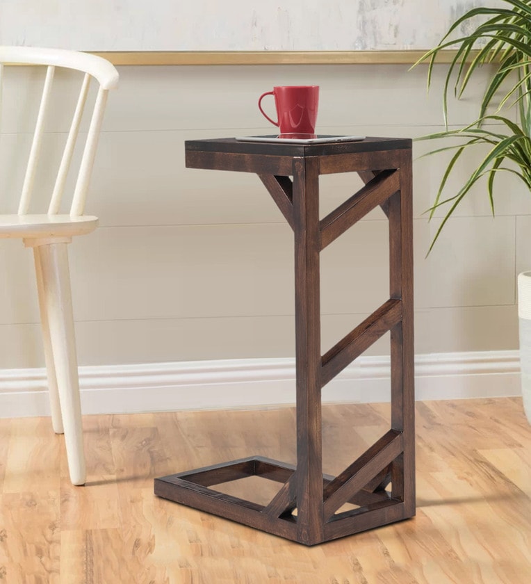 The Pole compact C side table is a simple table that adds value to your sofa in the living room. Place it on the side of your sofa or slide it in smoothly from the front of the sofa to free your lap of items. The table top provides a small space to keep your remotes and book handy while freeing you to do something else. Made from solid beech wood and finished in a deep dark oak finish, the Pole side table is a handy addition to compact homes.