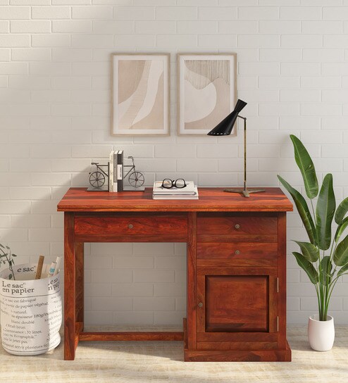 Polis Sheesham Wood Study Table In Honey Oak Finish