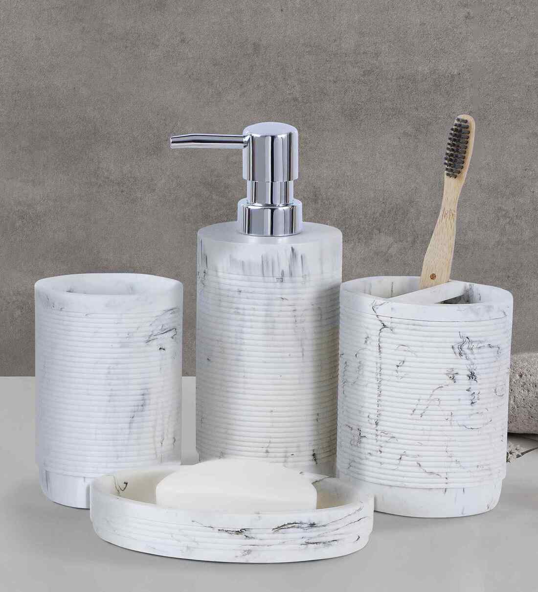 OBSESSIONS presents unique collection of 4 pieces of bathroom sets which is one of the finest quality products and gives your bathroom an attractive look. This would glam up your bathroom space and add new dimension to it. Made from high quality material polyresin, it is durable, sturdy, and great for everyday use.