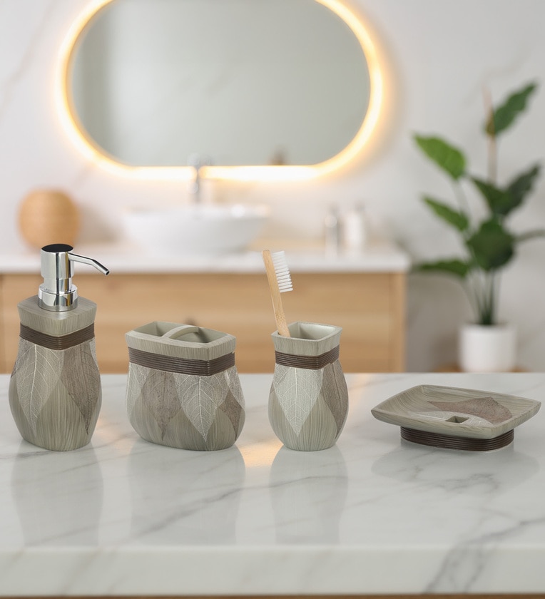 Polyresin 4Pcs Bathroom Set Set, Brown