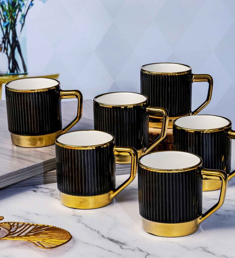 Porcelain Coffee/Tea Gold Design Mug Set of 6pcs