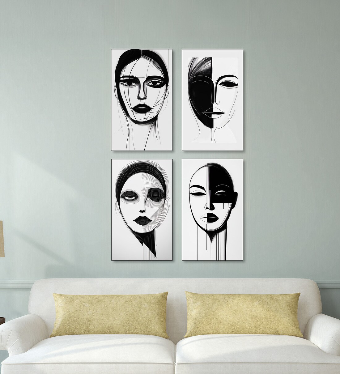 Portrait Set of 4 Canvas Wall Painting Black Frame