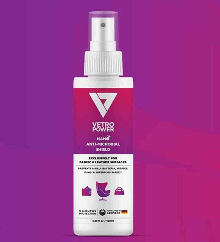 Vetro Power Nanotechnology Anti-Microbial Shield 100Ml Is A German Formulated Surface Disinfectant & Protectant For Fabric, Leather & Porous Surfaces. The Coating Prevents & Continuously Kills 99.99% Bacteria, Viruses, Germs, Fungi & Superbugs Safely For Upto 90 Days.