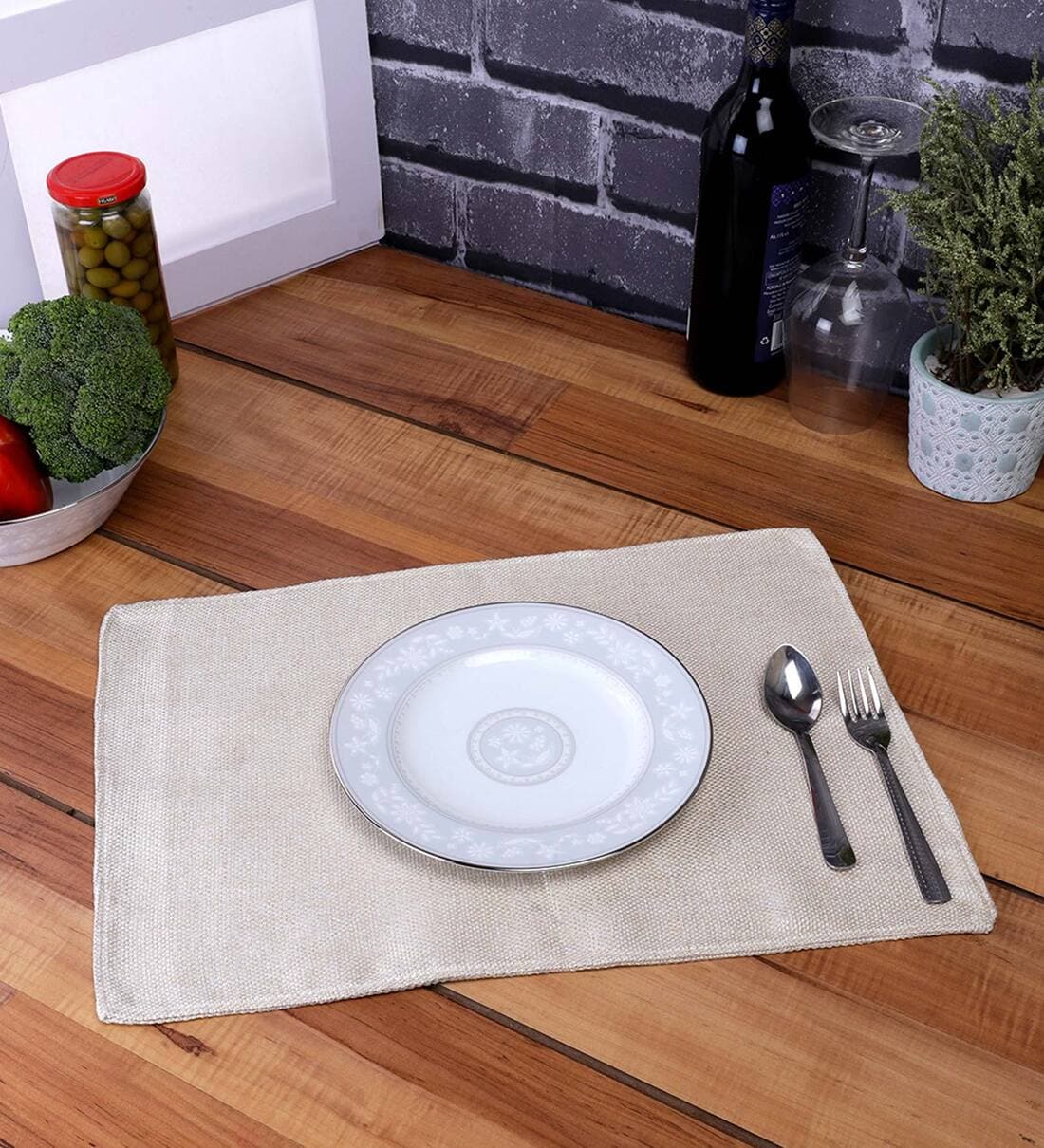 The Conversion Premium jute linen natural feel heat resistant cream color 6 Pc Table Mat set 12" x 18", Premium natural feel jute fabric offers strength and Exceptional softness, Heat resistant technology, It has rich Jute feel, soft in touch, premium fabric 100% color fast, 100% Shrinkage proof.