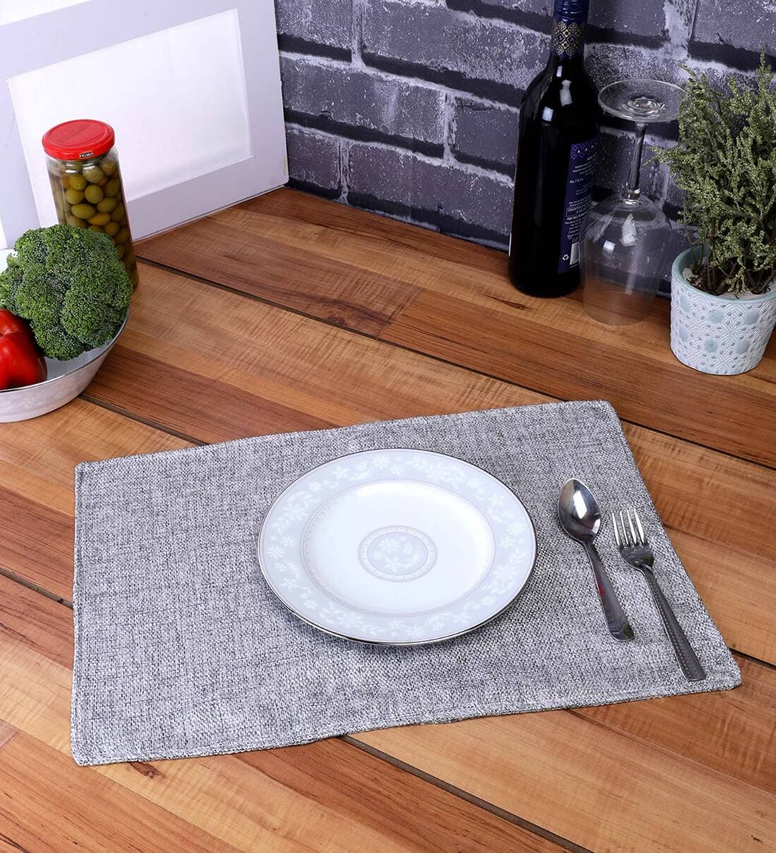 The Conversion Premium jute linen natural feel heat resistant grey color 6 Pc Table Mat set 12" x 18", Premium natural feel jute fabric offers strength and Exceptional softness, Heat resistant technology, It has rich Jute feel, soft in touch, premium fabric 100% color fast, 100% Shrinkage proof.