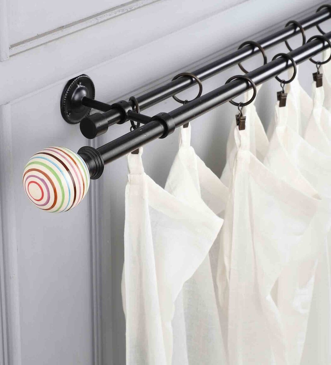 Premium 19mm Iron Curtain Rod with Multi Colour Ceramic Finial
