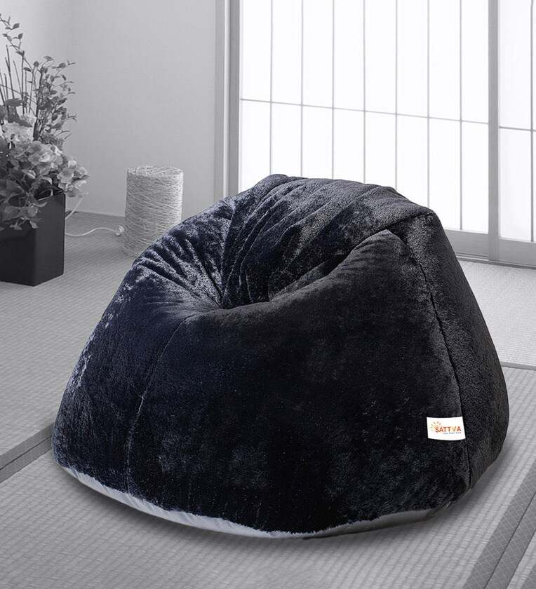 Premium Fur XXL Bean Bag with Beans in Black Colour