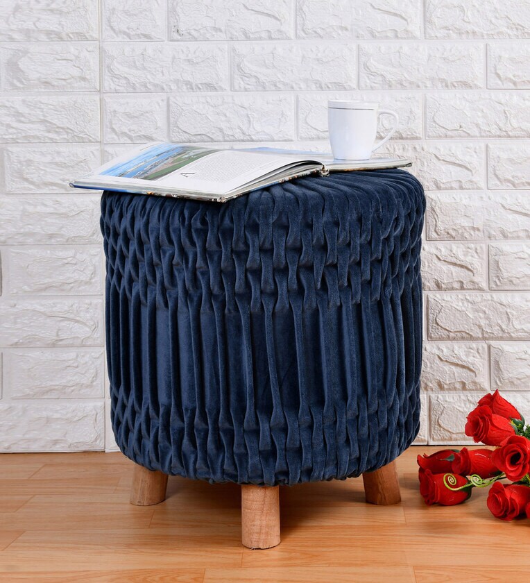 Puffy Fabric Seating Stool in Blue Colour