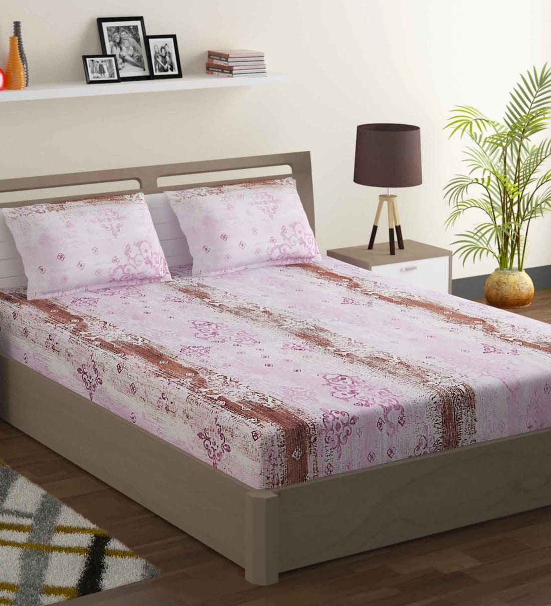 Purple Abstract 144 TC Cotton 1 Double King Size Bedsheet with 2 Pillow Covers