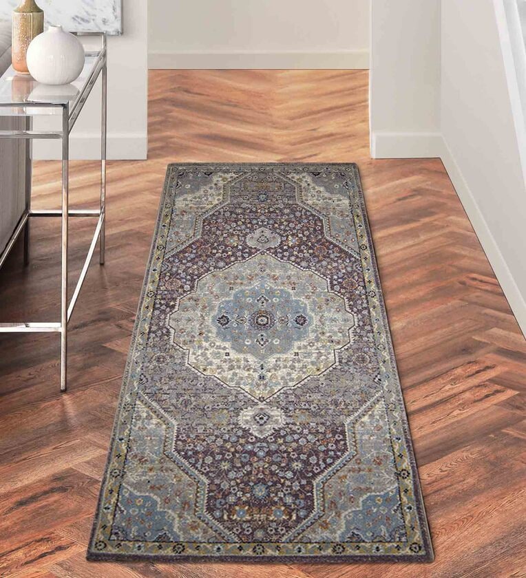 Purple Abstract Polyester 59x32 Inches Machine Made Floor Runner