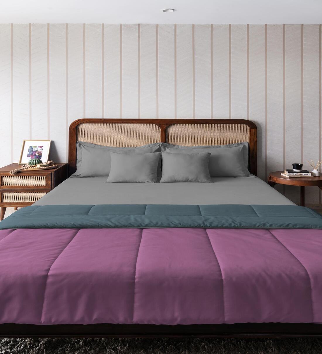 Purple And Grey Microfiber Solid Reversible 150 GSM Double Bed Comforter