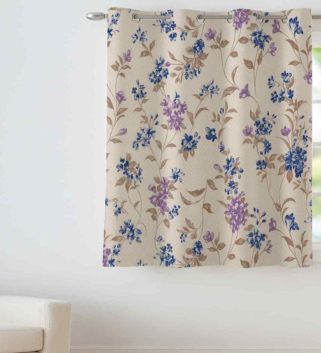 Purple Cotton Floral 5ft Eyelet Window Curtain (1 Pc)