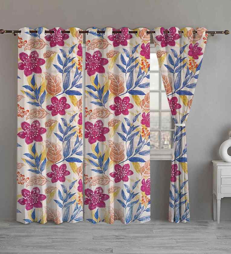 Purple Cotton Floral 7ft Eyelet Door Curtains (3 Pcs)