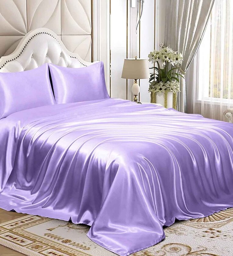 Purple Solid 400 TC Satin King Fitted Bedsheet with 2 Satin Pillow covers