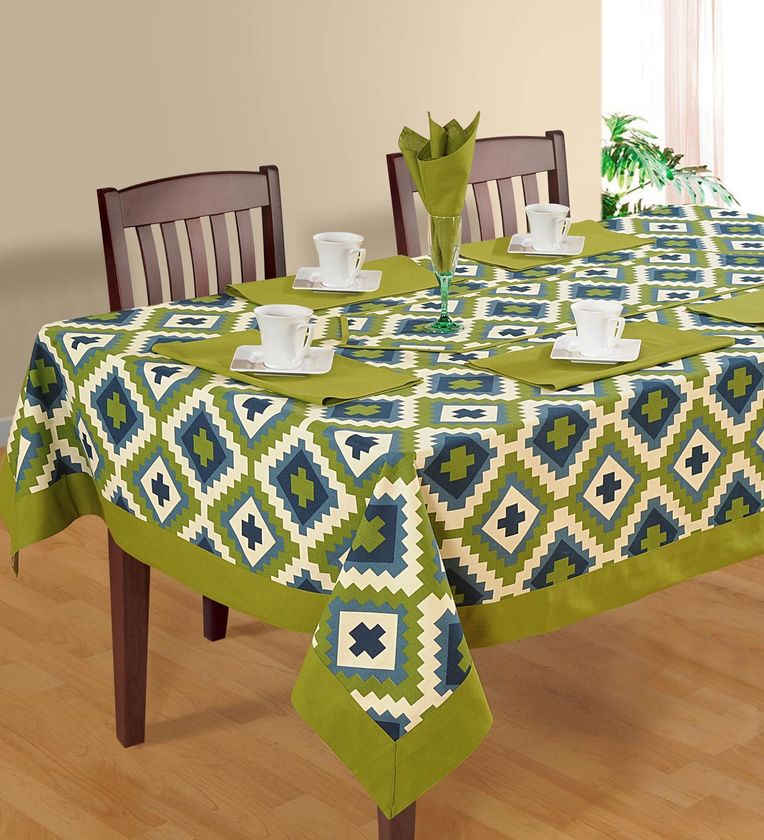 Puzzled (59x59) Green & Cream Cotton Table Cloth