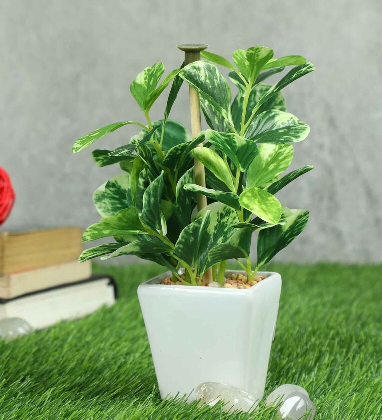 Pvc Coin Leaf Leaf Bonsai With White Ceramic Pot Artificial Plants