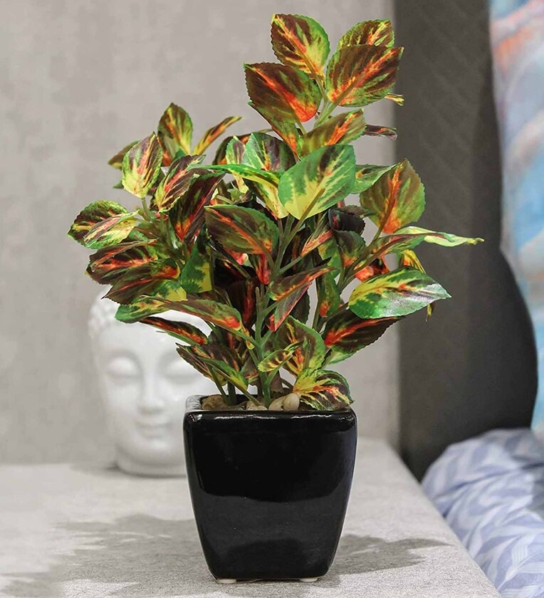 Pvc Multicolour Coleus Bonsai With Black Ceramic Pot Artificial Plants