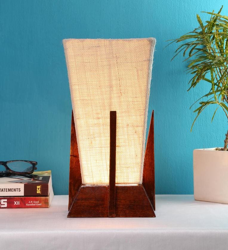 Pyramid White Jute Shade Table Lamp with Natural Brown Base
