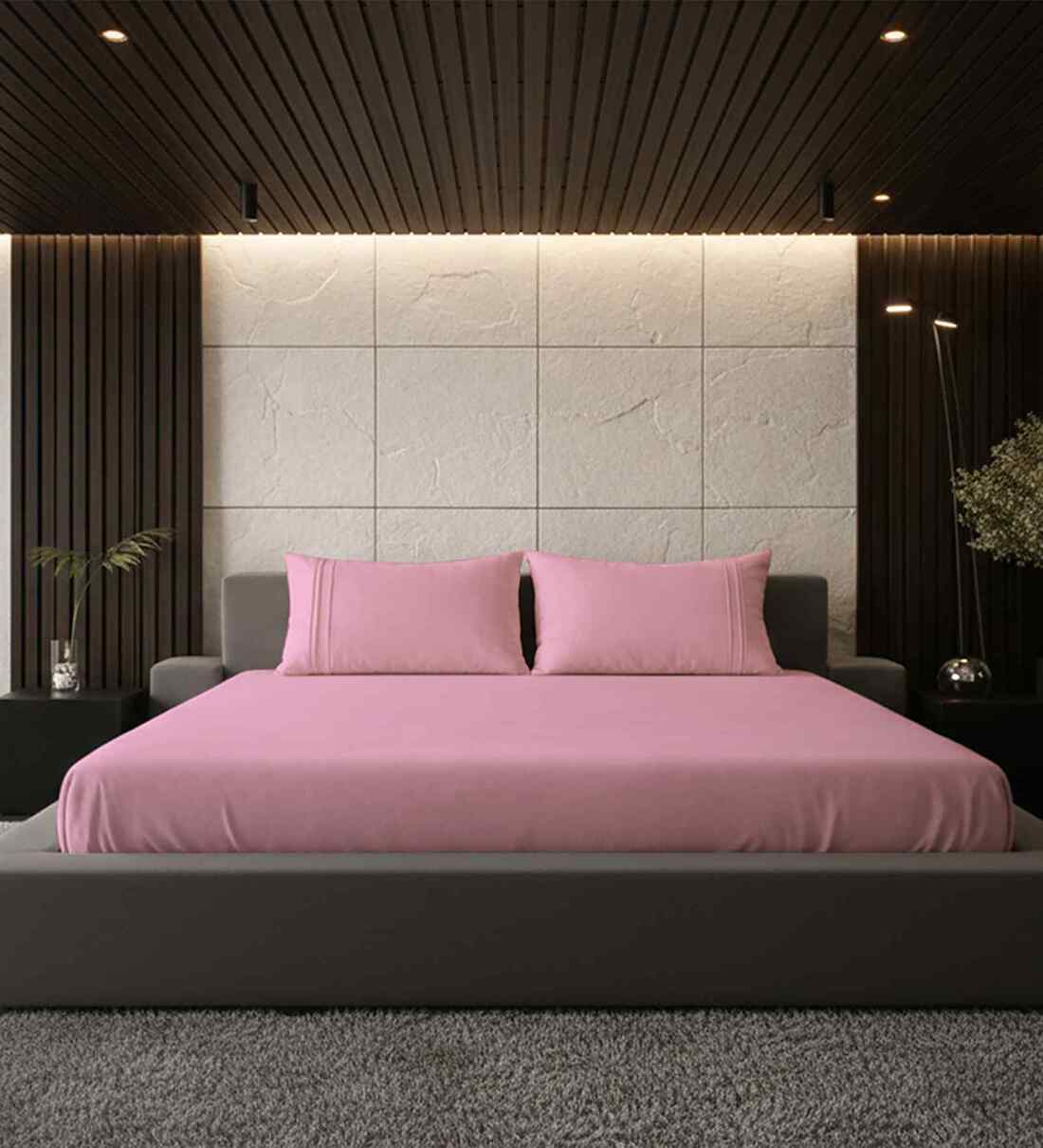 Quarts Pink Solid 500 TC Pure Cotton King Fitted Bedsheet with 2 Pillow Covers