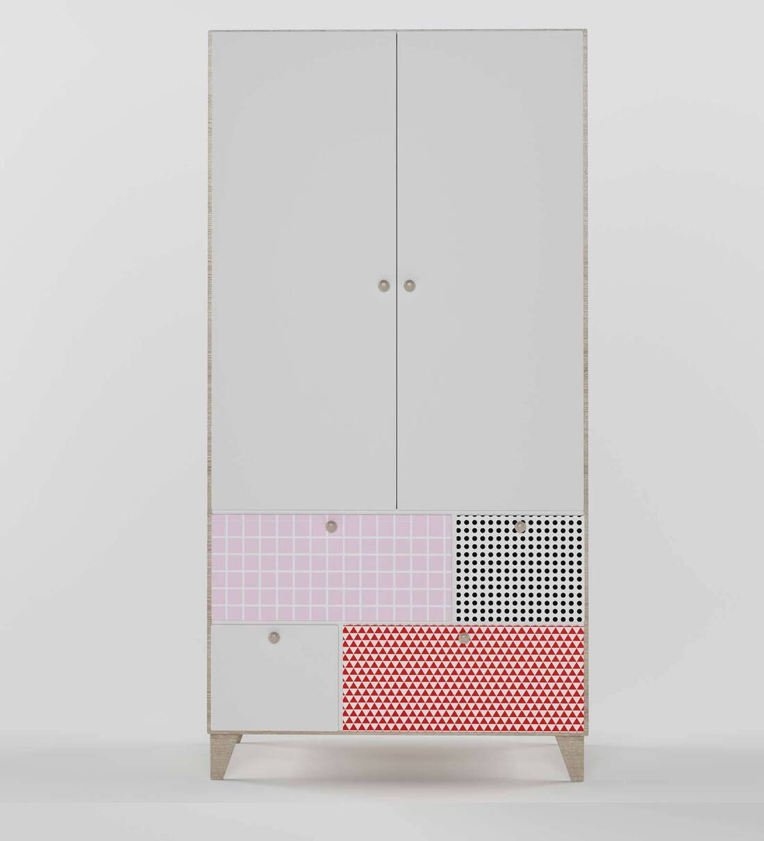 Quirk Kids 2 Door Wardrobe in Red,White & Black Finish