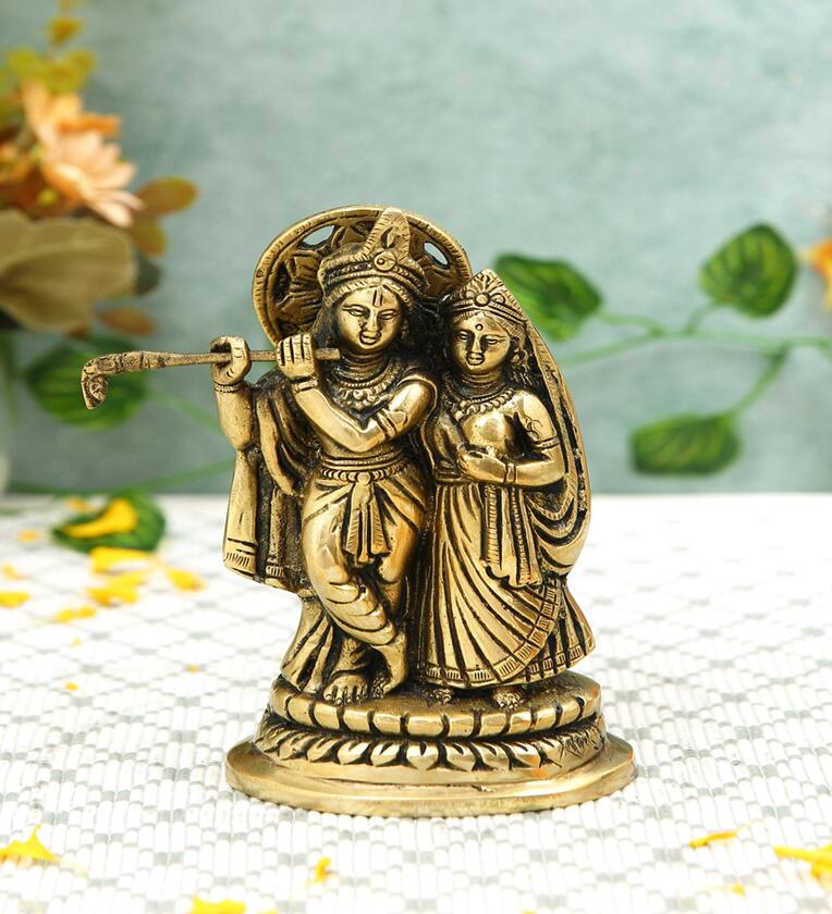 Radha Krishna Gold Brass Idol