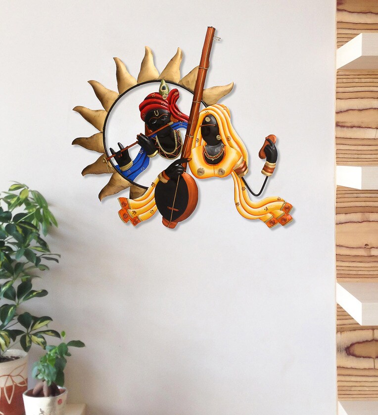 One Radha Krishna Playing Flute/Bansuri and Veena Wall Hanging