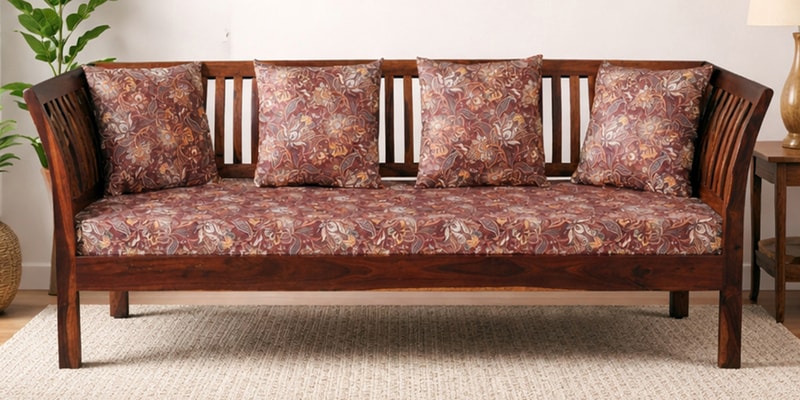 Radom Sheesham Wood 3 Seater Sofa In Honey Oak Finish