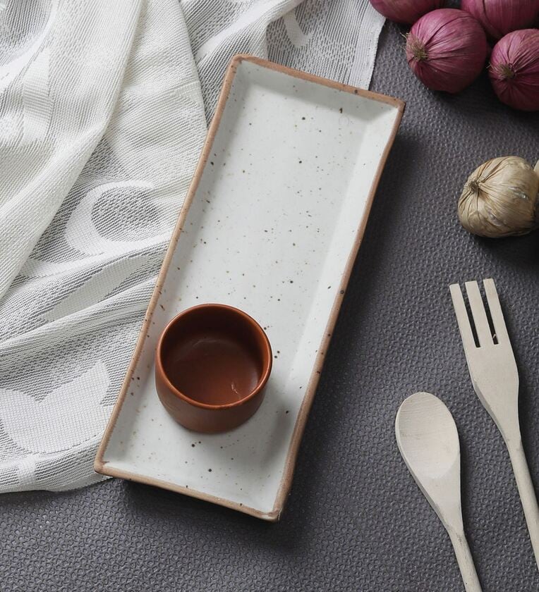 Rectangle White Ceramic (Set of 2) Appetizer Platter with Dip Bowl