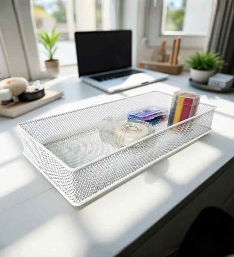 Maximise storage with our Stackable Mesh Storage Organiser, crafted from durable, powder-coated metal for a sleek and sturdy design. Its stackable structure helps optimize space, making it perfect for organizing office supplies, toiletries, kitchen essentials, and more. The open-mesh design ensures visibility and easy access, keeping your space tidy and efficient!