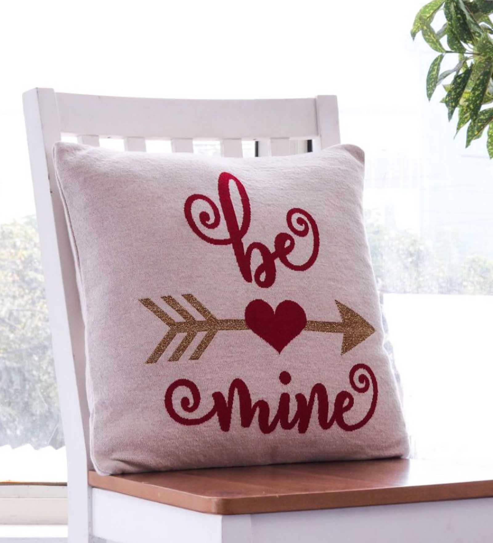 Enhance your Decor with Be Mine Knitted Cushion Cover. This beautifully made Jacquard cushion cover (No Fill Inside) is expertly knitted in 100% Premium Quality Cotton. Its beautioful text gives a cozy and snug feel to your dcor.