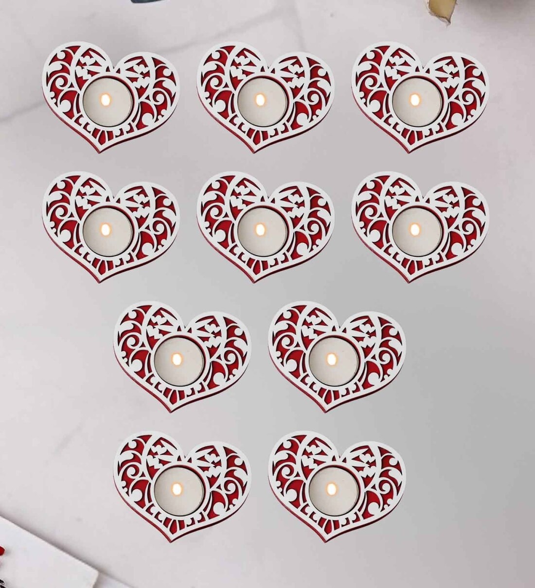Red and White Wooden Tealight Candle Holder (10 Pcs)