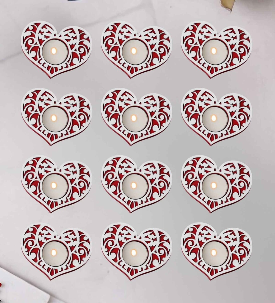 Red and White Wooden Tealight Candle Holder (12 Pcs)