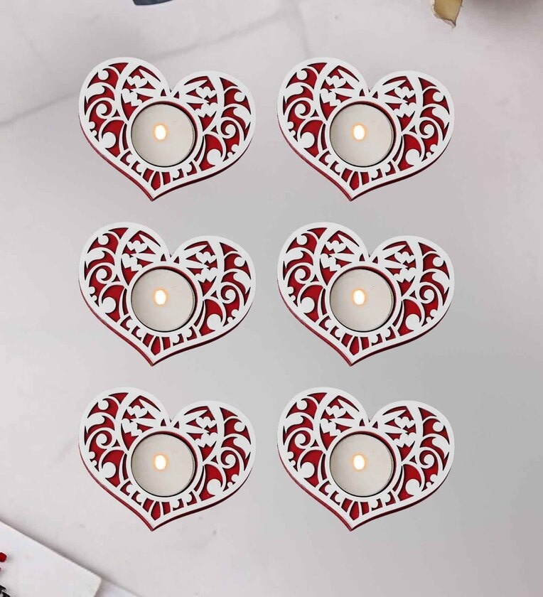 Red and White Wooden Tealight Candle Holder (6 Pcs)