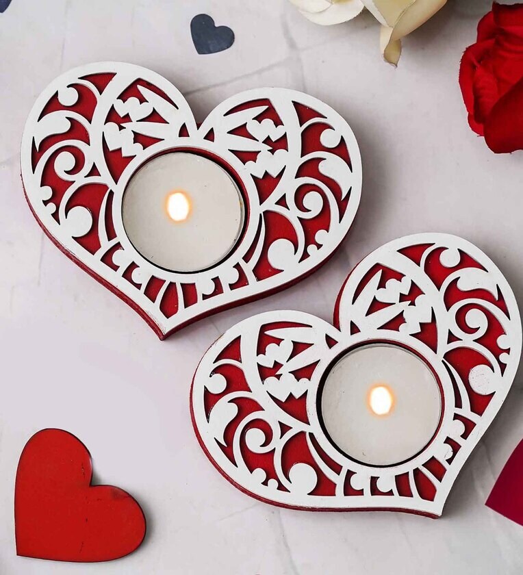 Red and White Wooden Tealight Candle Holder (8 Pcs)