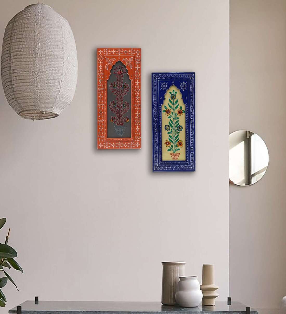 Beautiful pair of red and yellow rectangle MDF frames, handcrafted to bring vibrant style and balance to interiors.