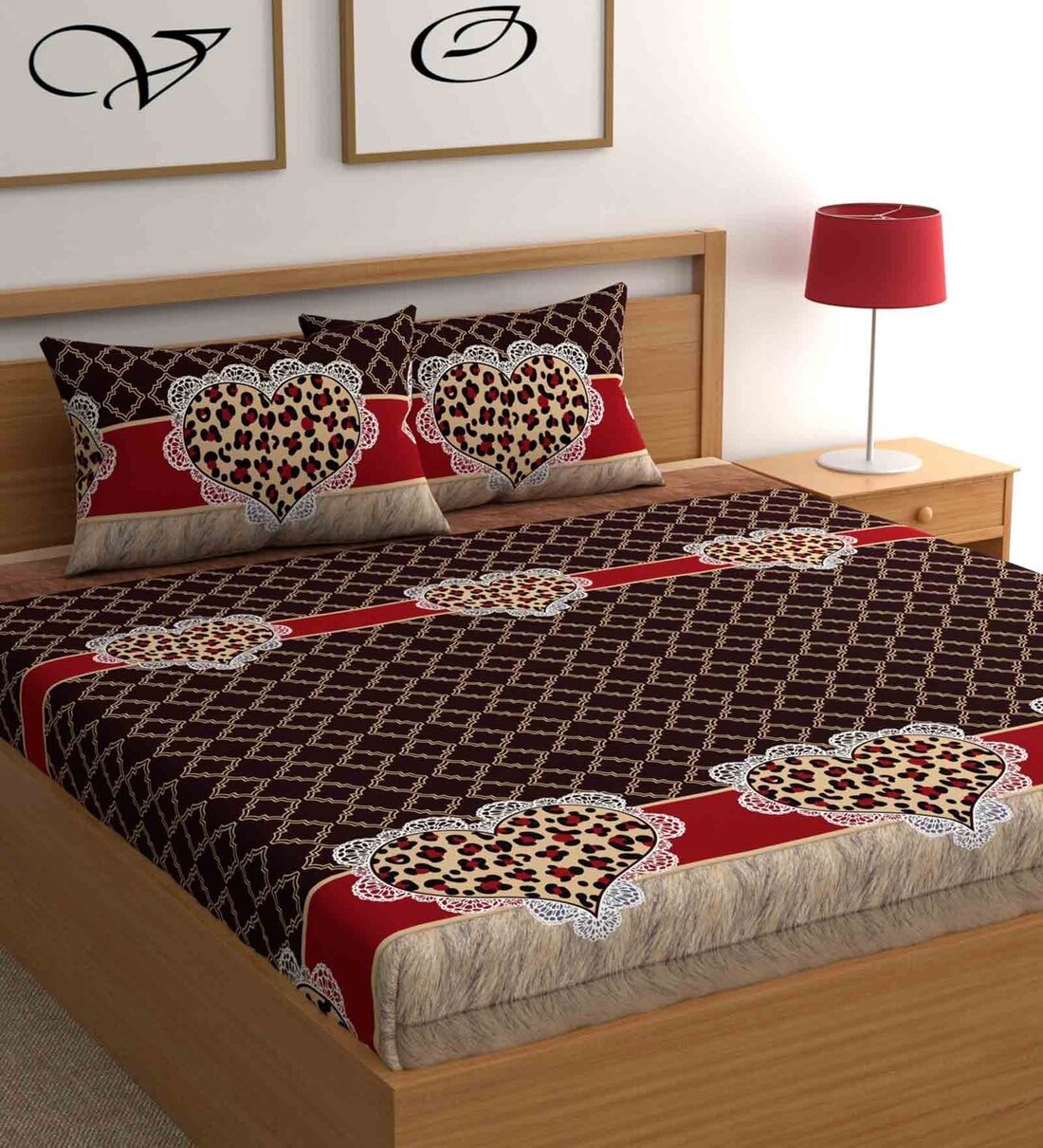Red & Brown Abstract Bohemya 160 TC Microfiber Queen Sized Bedsheet with 2 Pillow Covers