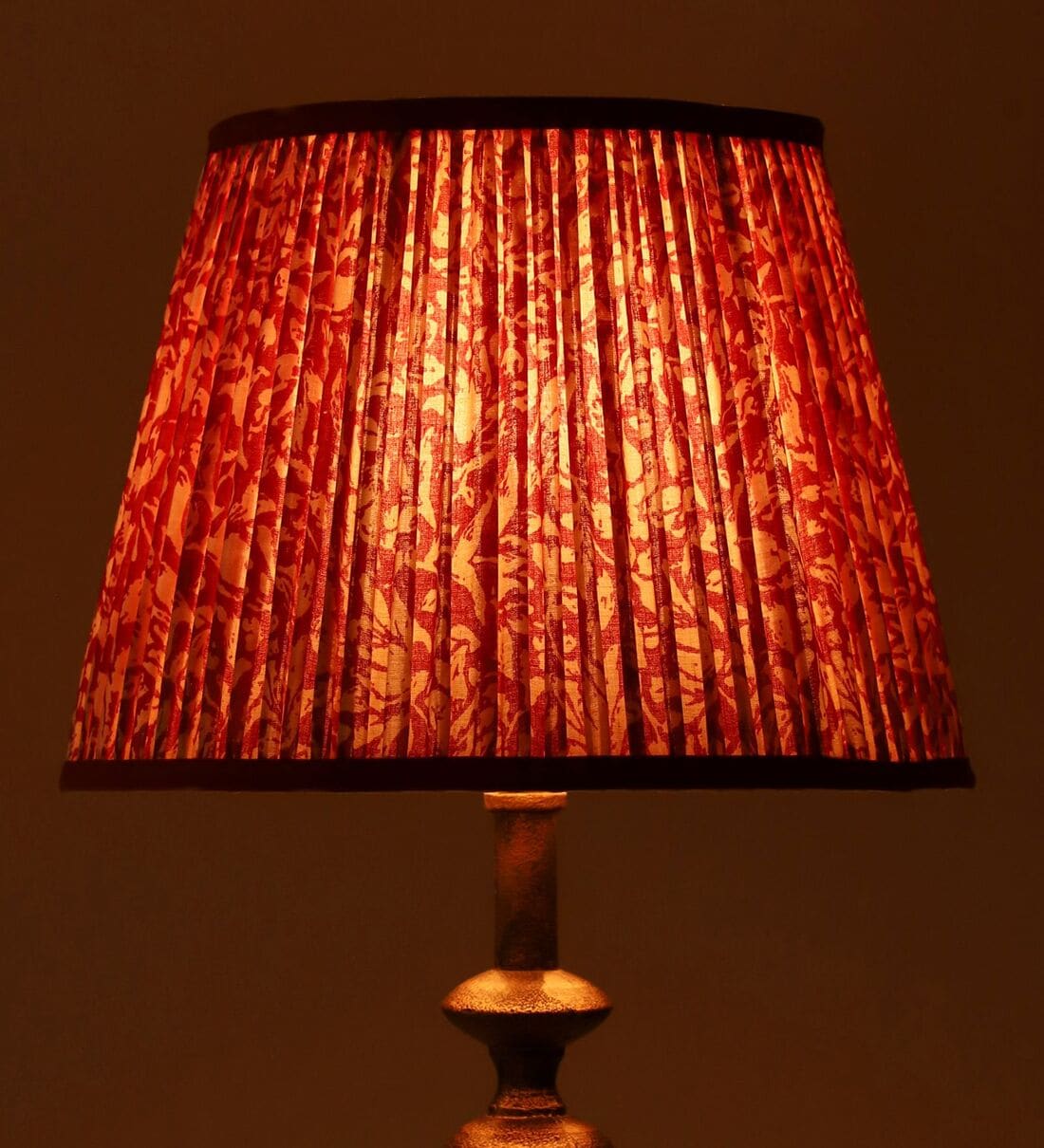 A softback printed cotton shade handmade by incredibly skilled craftswoman. This is a 20cm size (bottom diameter) lampshade which is designed to work with a British (B22) or European (E27/E14) bulb holder. We also provide a reducer ring that allows shades to sit comfortably on a B22 holder. If it is E27/E14, simply push out the reducer. This lampshade can be used on top of table lamps or floor lamps. Our shades are completely handmade and yet of top quality, eco-friendly, and of course 100% made in India. Dimensions (cms) : Top - 10, Bottom- 20, Height - 13