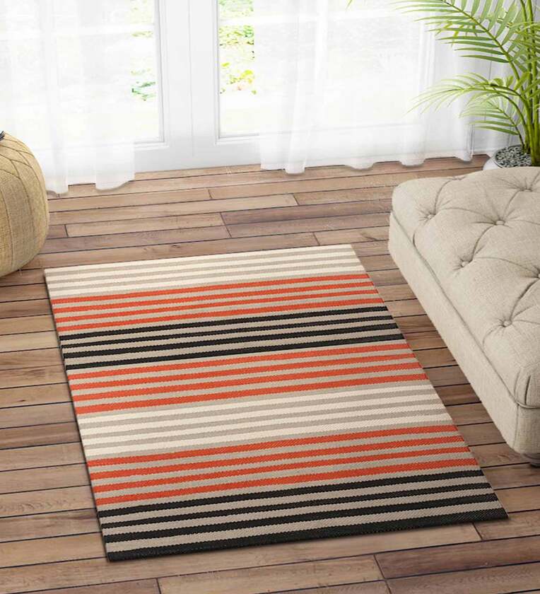 Red Cotton 2.5 ft x 4 ft Hand Woven Dhurrie