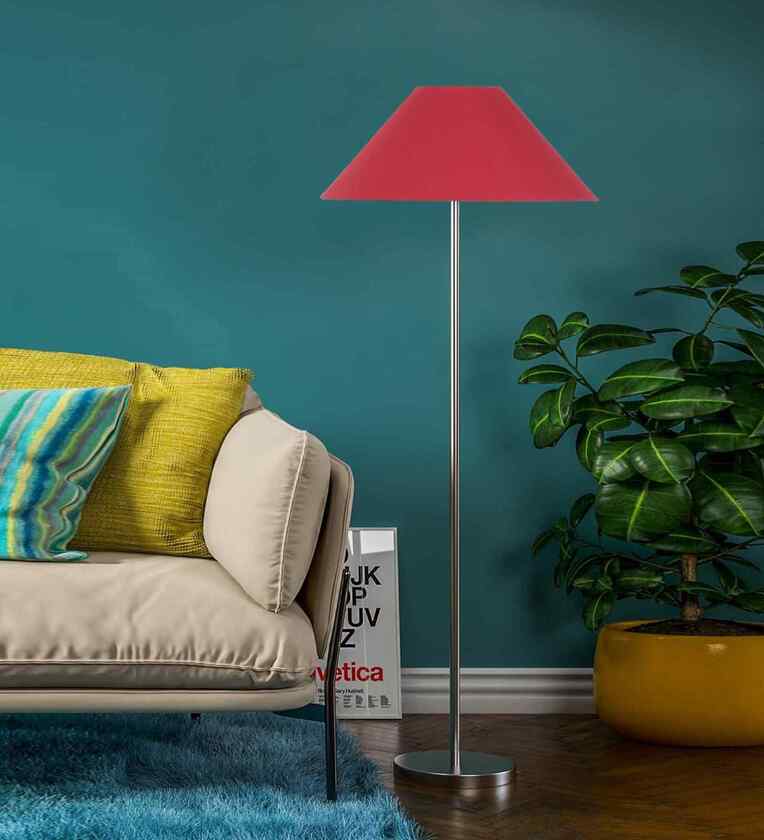 Red Cotton Coolie Shade Floor Lamp Steel Base