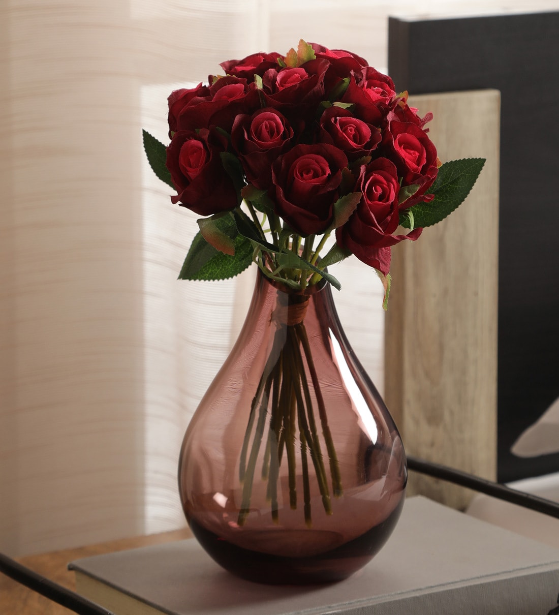Red Fabric Shaded Exquisite Rose Bunch Artificial Flowers