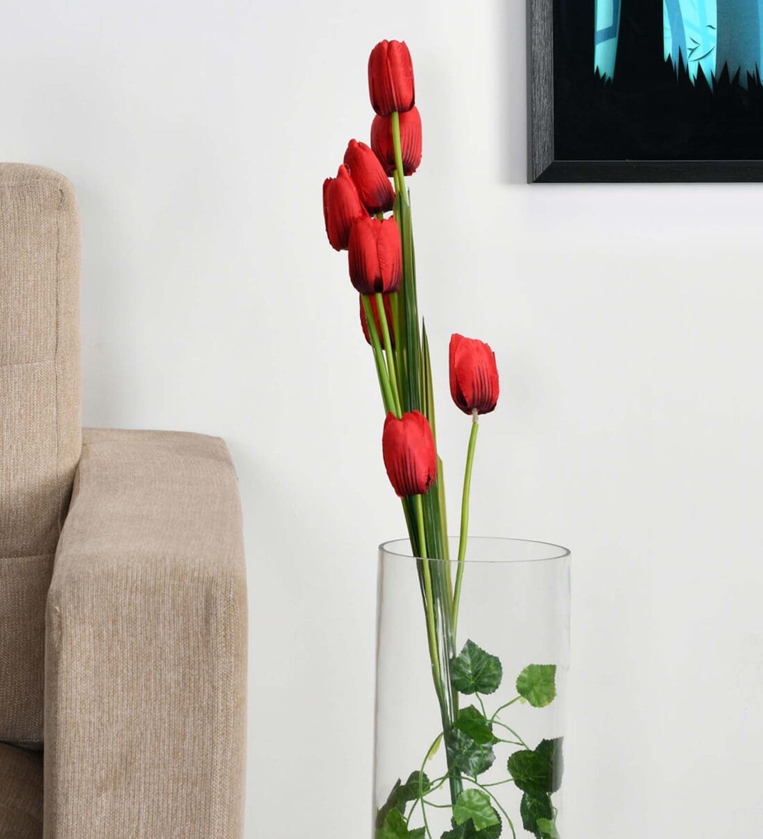 Red Fabric Tulip Artificial Flower Stick Without Pot
