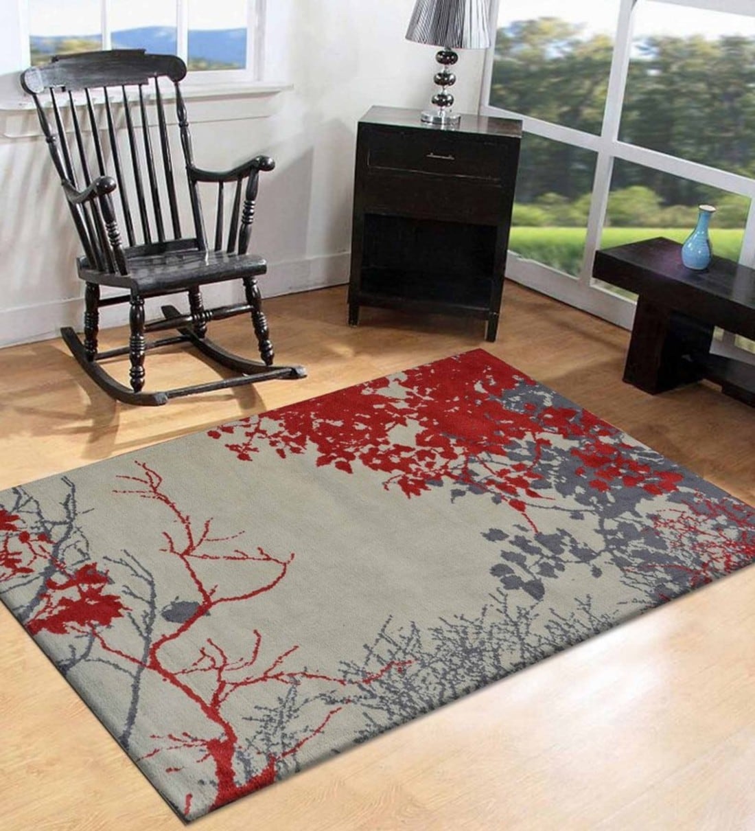 Red Floral Polyester 3 ft x 5 ft Hand Tufted Carpet