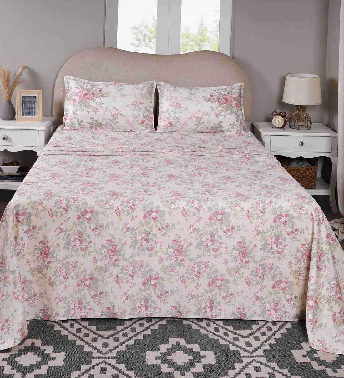 The elegant floral prints with contrast pillows makes the complete set entirely exquisite. The pillows can be used from both sides with entirely different look. These sheets are soft and smooth with extra luxury sateen finish. The sheet has been made from compact yarn and mercerized making it lustrous and durable. The long staple fibers used in the sheet adds to its softness and high quality. The breathable nature of cotton fibers makes it softer & skin friendly.