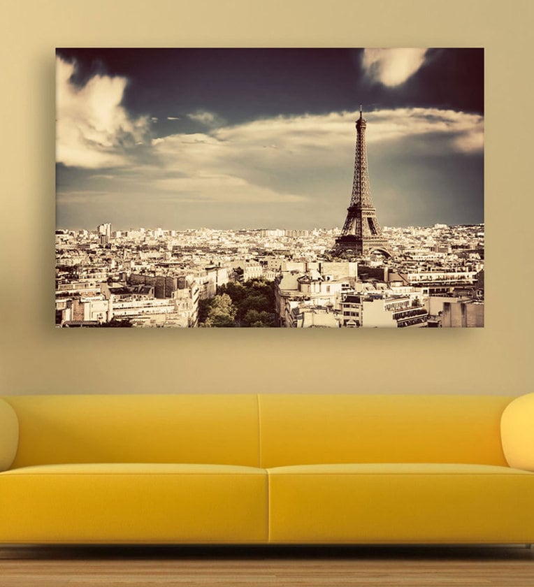 City Under Sky In White Canvas Framed Art Print (33 x 21 Inches)