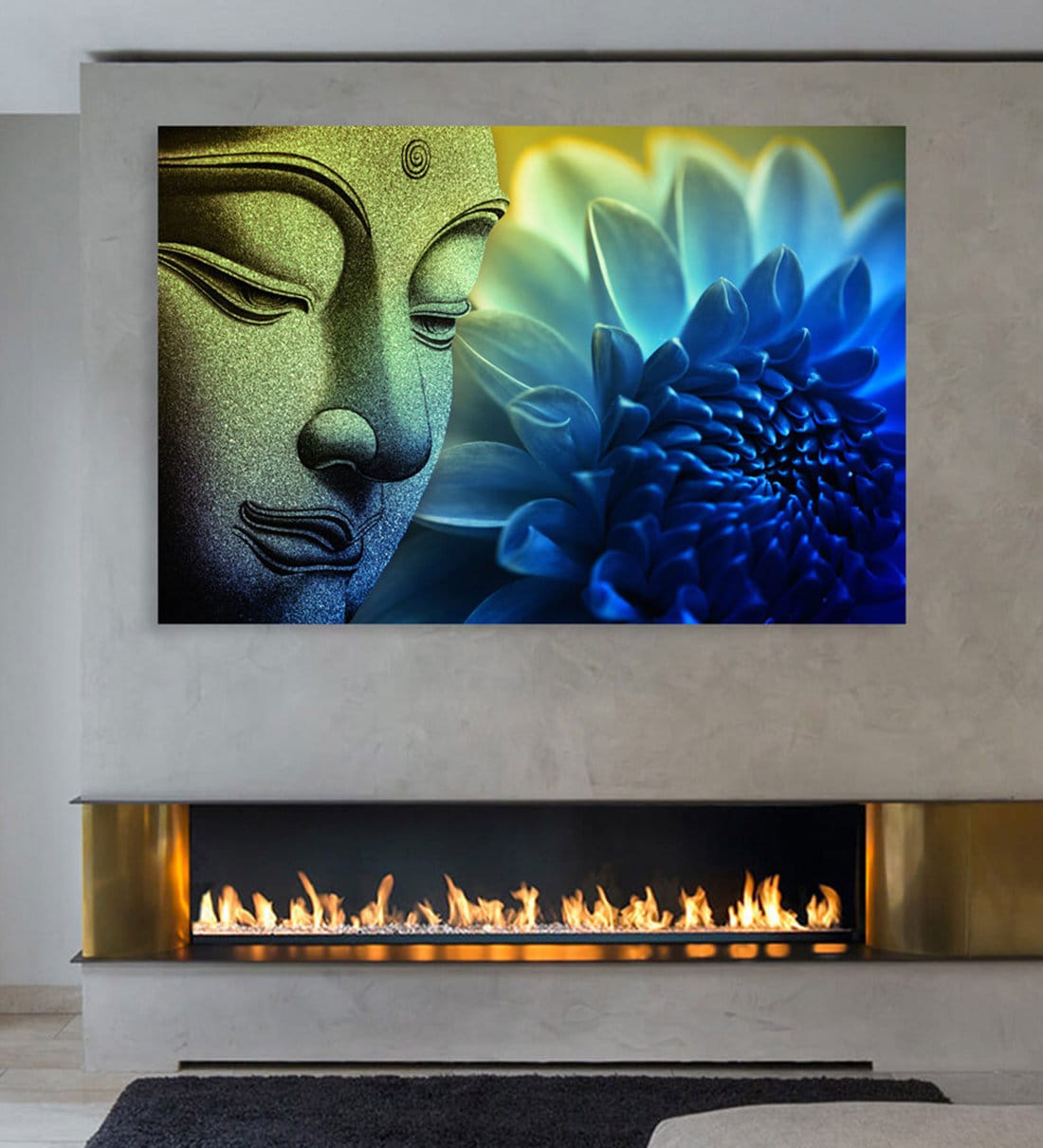 Buddha In Blue Canvas Framed Art Print (33 x 21 Inches)